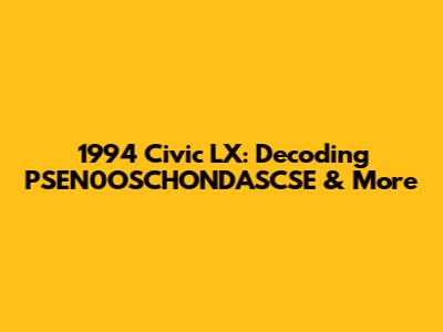 The 1994 Honda Civic LX is a classic car that offers a winning combination of reliability, affordability, and fuel efficiency. While the term "psen0oschondascse" might be a mystery, don't let it distract you from the many great qualities of this car. With proper maintenance and care, your 1994 Civic LX can provide years of reliable transportation. Happy driving!