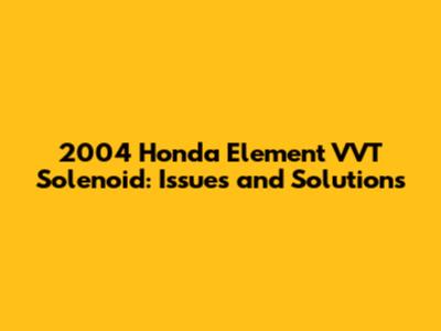 2004 Honda Element: VVT Solenoid Issues & Solutions