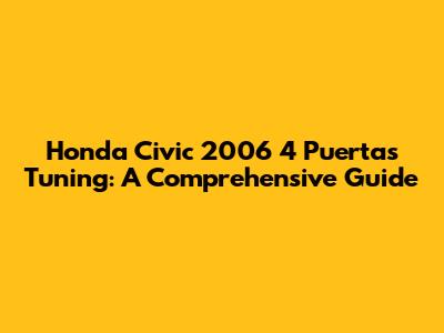 Tuning your 2006 Honda Civic 4-door is a fantastic way to express your individuality and enhance your driving experience. Whether you're focused on performance upgrades, aesthetic enhancements, or a combination of both, there are countless ways to customize your ride. Remember to research thoroughly, choose quality parts, and consider professional installation for complex modifications. With the right approach, you can transform your Civic into a true reflection of your style and passion. Happy tuning!
