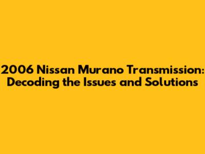 2006 Nissan Murano Transmission: Issues & Fixes