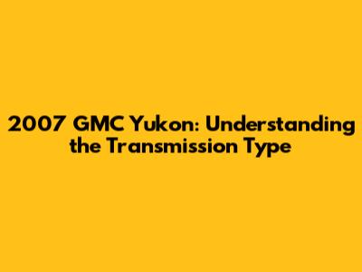 The 2007 GMC Yukon is a popular SUV that offers a blend of power, space, and reliability. One of the critical components of any vehicle is its transmission, responsible for transferring power from the engine to the wheels. Understanding the transmission type in your 2007 GMC Yukon is essential for proper maintenance, troubleshooting, and potential repairs. In this article, we'll dive into the specifics of the 2007 GMC Yukon's transmission, covering its type, features, and common issues.