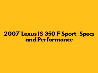 2007 Lexus IS 350 F Sport: Specs And Performance