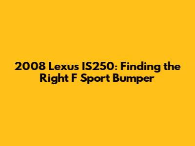 Hey guys! If you're looking to upgrade or replace the bumper on your 2008 Lexus IS250 with an F Sport version, you've come to the right place. Let's dive into everything you need to know to make the best choice. Whether you're aiming for a sporty new look or need a replacement after a fender bender, understanding your options is key.