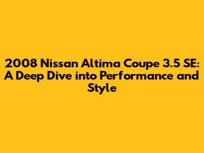Hey car enthusiasts! Today, we're taking a nostalgic trip back to 2008 to explore a real gem: the Nissan Altima Coupe 3.5 SE. This car was more than just a ride; it was a statement. A statement of style, performance, and a touch of sporty elegance. If you're a fan of coupes, or you're just curious about what made this car tick, you're in the right place. We'll be breaking down everything from its impressive specs to the features that made it stand out. Get ready to dive into the details, and let's see why the 2008 Altima Coupe 3.5 SE remains a favorite among many.
