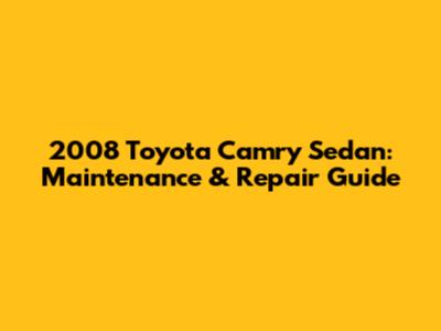 2008 Toyota Camry Sedan: Maintenance & Repair Guide