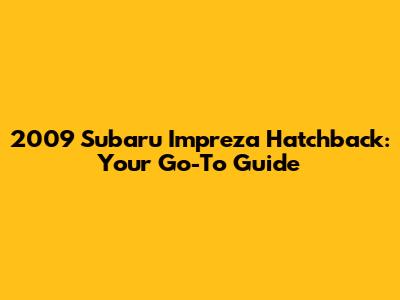2009 Subaru Impreza Hatchback: A Comprehensive Guide