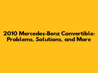 2010 Mercedes-Benz Convertible: Problems, Solutions, And More