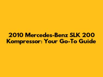 2010 Mercedes-Benz SLK 200 Kompressor: A Comprehensive Guide