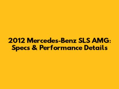 2012 Mercedes-Benz SLS AMG: Specs & Performance Details