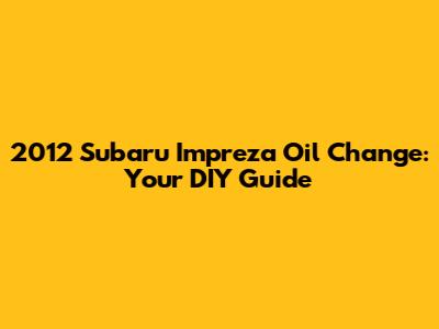 2012 Subaru Impreza Oil Change: A Step-by-Step Guide