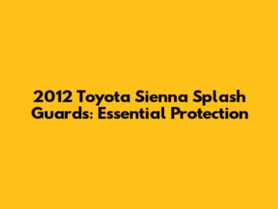 2012 Toyota Sienna Splash Guards: Essential Protection