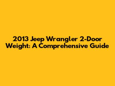 Hey Jeep enthusiasts! Ever wondered about the 2013 Jeep Wrangler 2-door weight? You're not alone! It's a common question, and knowing the weight of your ride is super important for various reasons, from understanding its off-road capabilities to figuring out towing capacity and even fuel efficiency. So, let's dive deep and explore everything you need to know about the 2013 Jeep Wrangler 2-door's weight.