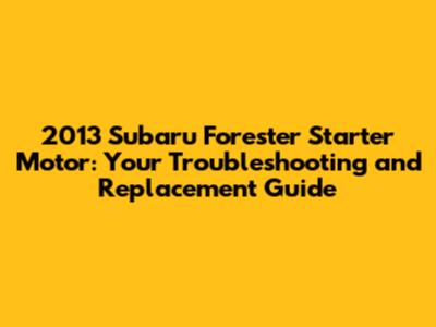 2013 Subaru Forester Starter Motor: Troubleshooting & Replacement