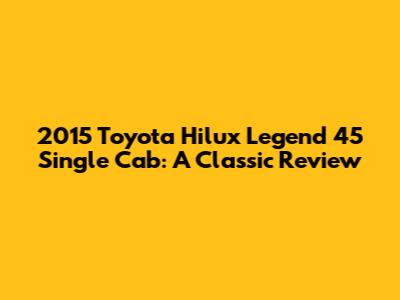 In summary, the 2015 Toyota Hilux Legend 45 Single Cab remains a compelling option for buyers seeking a reliable, durable, and practical vehicle. Its enduring popularity stems from its proven track record of toughness, its simple yet functional design, and its ability to perform consistently in demanding conditions. While it may not offer the same level of luxury or advanced technology as newer models, its core strengths make it a smart choice for those who prioritize reliability and value for money.