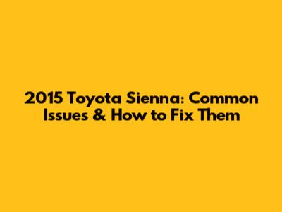 2015 Toyota Sienna: Common Issues & How To Fix Them