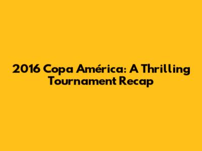 2016 Copa América: A Thrilling Tournament Recap