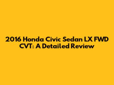The 2016 Honda Civic Sedan LX FWD CVT is a well-rounded and reliable compact car that offers a compelling blend of fuel efficiency, comfort, and safety. While it may not have all the bells and whistles of higher trim levels, the LX trim provides excellent value for money. Its spacious interior, comfortable ride, and comprehensive suite of safety features make it an ideal choice for daily commuting and family transportation. If you're in the market for a dependable and affordable compact car, the 2016 Civic LX is definitely worth considering.