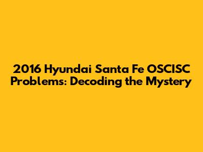 2016 Hyundai Santa Fe OSCISC Issues: A Deep Dive