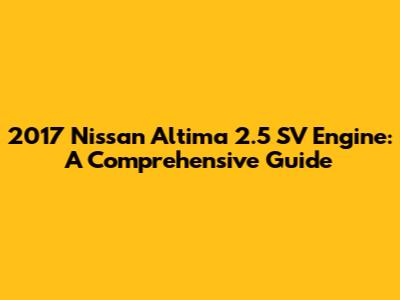 2017 Nissan Altima 2.5 SV Engine: A Comprehensive Guide