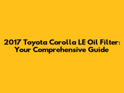 2017 Toyota Corolla LE Oil Filter: Everything You Need To Know