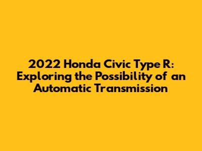 Hey car enthusiasts, let's dive into something that's been sparking a lot of conversations lately: the 2022 Honda Civic Type R and the ever-present question of whether an automatic transmission will grace its high-performance setup. As you know, the Type R has always been synonymous with a manual transmission, a feature that has endeared it to purists and driving aficionados. But with the automotive landscape rapidly evolving, and the rise of advanced automatic transmissions, it's natural to wonder if Honda might consider a shift. In this article, we will thoroughly explore the possibilities, considering the current market trends, the demands of the modern driver, and what Honda has hinted at regarding future plans. We will also delve into the technical challenges and potential benefits of adding an automatic option, and how it might impact the Type R's legendary performance. So buckle up, guys, because we are in for an interesting ride through the world of the 2022 Honda Civic Type R.