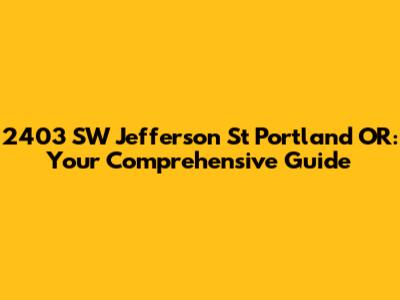 Hey guys! Are you looking for information about 2403 SW Jefferson St, Portland, OR? You've landed in the right place! This article will provide you with a comprehensive overview of this address, covering everything from its location and neighborhood to potential property details and nearby amenities. We'll dive deep to give you a solid understanding of what this address has to offer. Let's get started!