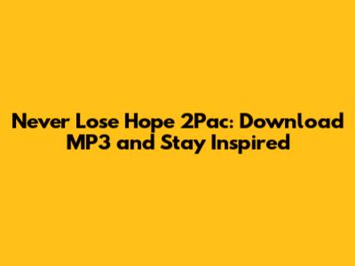 So there you have it, folks! "Never Lose Hope" by 2Pac is more than just a song; it's a powerful reminder that even in the face of adversity, we should never give up on our dreams. Download the MP3, blast it through your speakers, and let the message of hope inspire you to keep pushing forward. And while you're at it, check out some of 2Pac's other motivational anthems to keep the vibes going. Remember, no matter what challenges you're facing, you're not alone, and there's always hope for a better tomorrow. Stay strong, stay positive, and never lose hope!