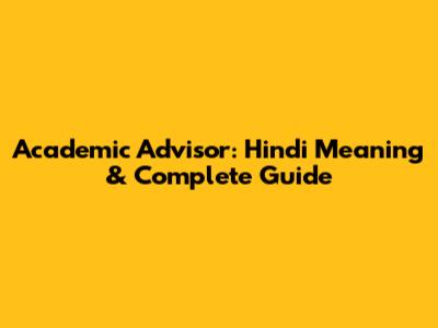 Academic Advisor: Hindi Meaning & Complete Guide