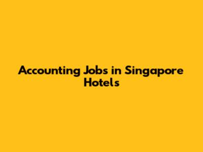 Accounting Jobs In Singapore Hotels