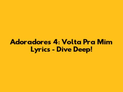 Hey guys! Are you looking for the lyrics to "Volta Pra Mim" by Adoradores 4? You've come to the right place! This song has been touching hearts everywhere, and it’s no wonder you want to sing along. Let’s dive deep into what makes this song so special and why it resonates with so many people. Finding the lyrics can sometimes be a bit tricky, but don't worry, we've got you covered. So, let's get started and explore the heartfelt words of "Volta Pra Mim" by Adoradores 4! Whether you're a longtime fan or just discovering this beautiful song, you're in for a treat. We’ll also talk about the impact of the song and where you can find more amazing music from Adoradores 4. So stick around and let’s get into it!