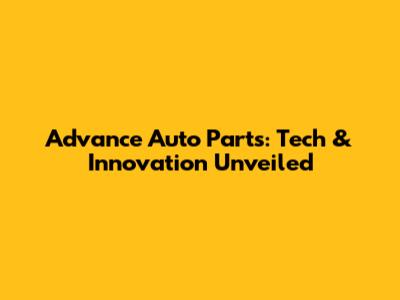 Advance Auto Parts: Tech & Innovation Unveiled