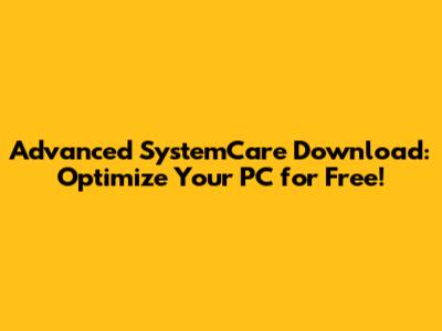 Advanced SystemCare: Free Download & Optimize Your PC!