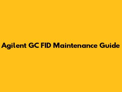 Agilent GC FID Maintenance Guide