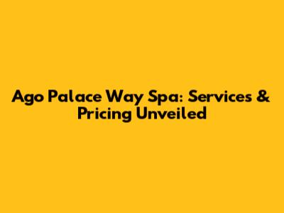 Ago Palace Way Spa: Services & Pricing Unveiled