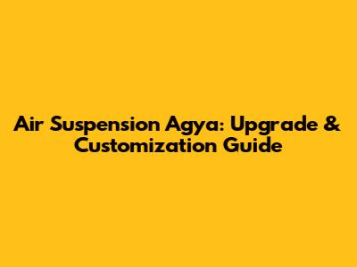 Air Suspension Agya: Upgrade & Customization Guide
