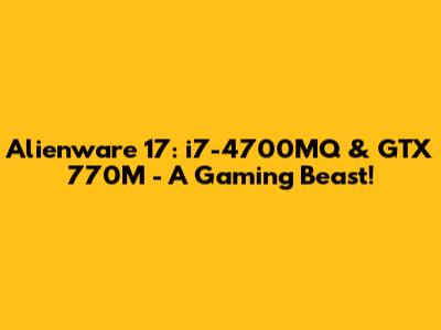 Let's dive into the Alienware 17 configuration featuring the Intel Core i7-4700MQ processor and the NVIDIA GeForce GTX 770M graphics card. This setup was a powerhouse back in its day, offering a compelling blend of performance and portability for gamers and enthusiasts alike. We'll explore the key components, performance benchmarks, and overall capabilities of this classic gaming laptop.