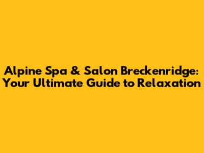 Hey guys! Planning a trip to the stunning mountain town of Breckenridge? Awesome! You're in for a treat. But beyond the epic skiing, snowboarding, and hiking, there's a whole world of relaxation and rejuvenation waiting for you. And at the heart of it all is the Alpine Spa & Salon Breckenridge. This isn't just your average spa, folks. It's a sanctuary, a haven, a place where you can truly unwind and escape the hustle and bustle of everyday life. So, buckle up, because we're about to dive deep into everything you need to know about the Alpine Spa & Salon, from its amazing services to its prime location in the heart of Breckenridge. Let's get this show on the road!