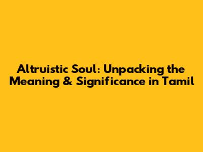 Altruistic Soul: Meaning & Significance In Tamil