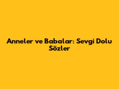 Anneler Ve Babalar: Sevgi Dolu Sözler