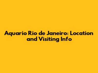 Aquario Rio De Janeiro: Location And Visiting Info