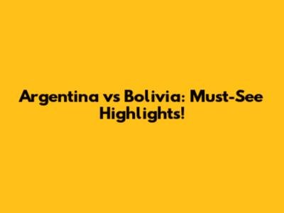 Argentina Vs Bolivia: Must-See Highlights!