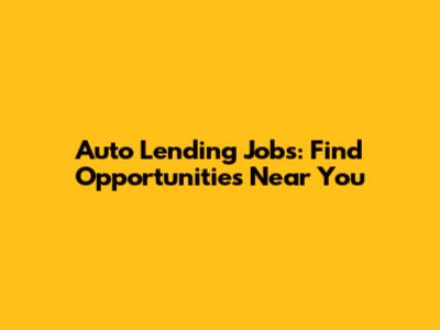 Auto Lending Jobs: Find Opportunities Near You