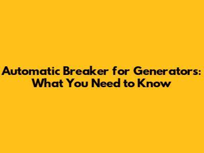 What is an Automatic Breaker for a Generator?