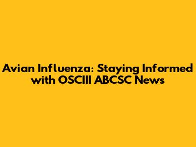 Avian Influenza: Latest OSCIII ABCSC News & Updates