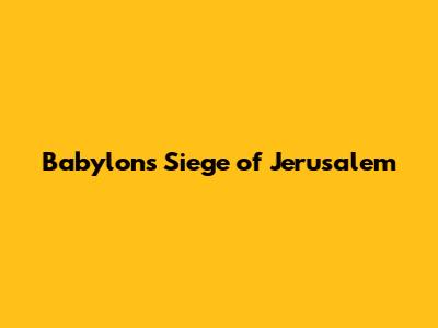Babylon's Siege Of Jerusalem