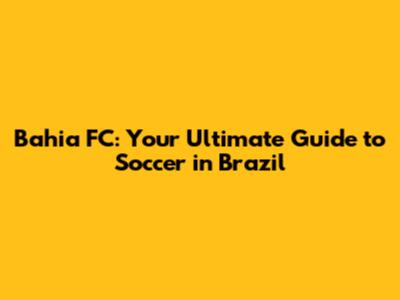 Bahia FC: Your Ultimate Guide To Soccer In Brazil