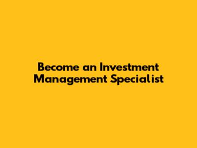 Become An Investment Management Specialist