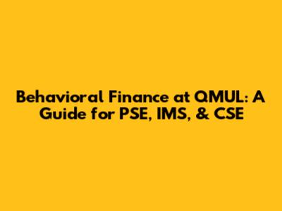 Behavioral Finance At QMUL: A Guide For PSE, IMS, & CSE