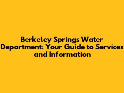 Hey guys! Ever wondered about the Berkeley Springs Water Department? Whether you're a resident, a business owner, or just curious about this essential service, we've got you covered. This article will dive deep into everything you need to know about the department, from its vital services to contact information and more. Think of this as your one-stop shop for all things Berkeley Springs water! We'll break down what they do, why it's important, and how it impacts your daily life. So, grab a glass of water (maybe even some Berkeley Springs water!), and let's get started!