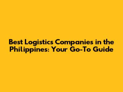 Best Logistics Companies In The Philippines: Your Go-To Guide